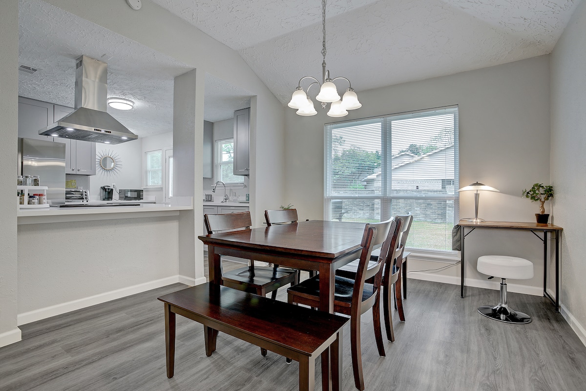 Entspanne dich im Komfort und in der Ruhe dieser gemütlichen, umgebauten Villa mit 3 Schlafzimmern und 2 Bädern. Das Hotel liegt im Südosten von Houston, nur wenige Minuten von der Baybrook Mall und Outdoor-Einkaufsmöglichkeiten entfernt. WLAN und Parkplätze sind inbegriffen. Das Haus ist tadellos sauber und wird vor jedem Aufenthalt desinfiziert. Bitte hinterlasse das Haus im gleichen Zustand, in dem du es vorgefunden hast. Smart-TVs befinden sich im Wohnzimmer und im Hauptschlafzimmer. Du kannst dich gerne mit deinen Lieblings-TV-Apps verbinden. Wir hoffen, einen Raum zu schaffen, der sicherlich ein zweites Zuhause sein wird.