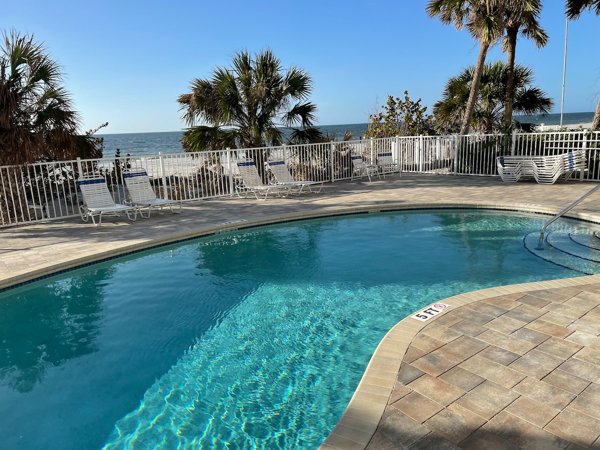 Avalon. Clearwater. Gemütliche Wohnung. Blick auf den Pool.
