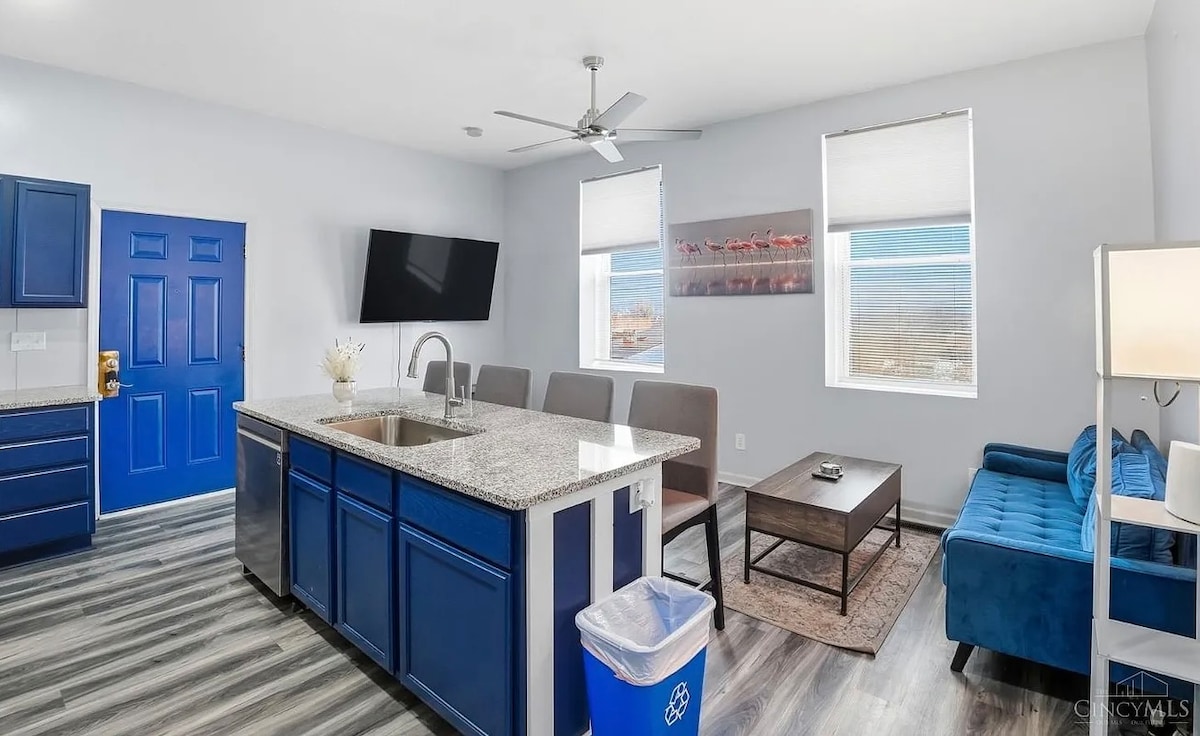 Willkommen in der Historic Lyric Presidential Suite, einem geräumigen Refugium mit 2 Schlafzimmern im Herzen von Cincinnati. Diese Suite ist perfekt für Paare und Familien und bietet eine Mischung aus historischem Charme und modernem Komfort. Genieße die Gourmet-Küche, ruhige Schlafzimmer und einfachen Zugang zu den Sehenswürdigkeiten der Innenstadt, die alle nur wenige Schritte entfernt sind. Mit Platz für bis zu 6 Gäste ist es ein idealer Ausgangspunkt, um die Stadt zu erkunden. Erlebe Komfort und Bequemlichkeit in bester Lage – dein perfekter Kurzurlaub wartet auf dich!
