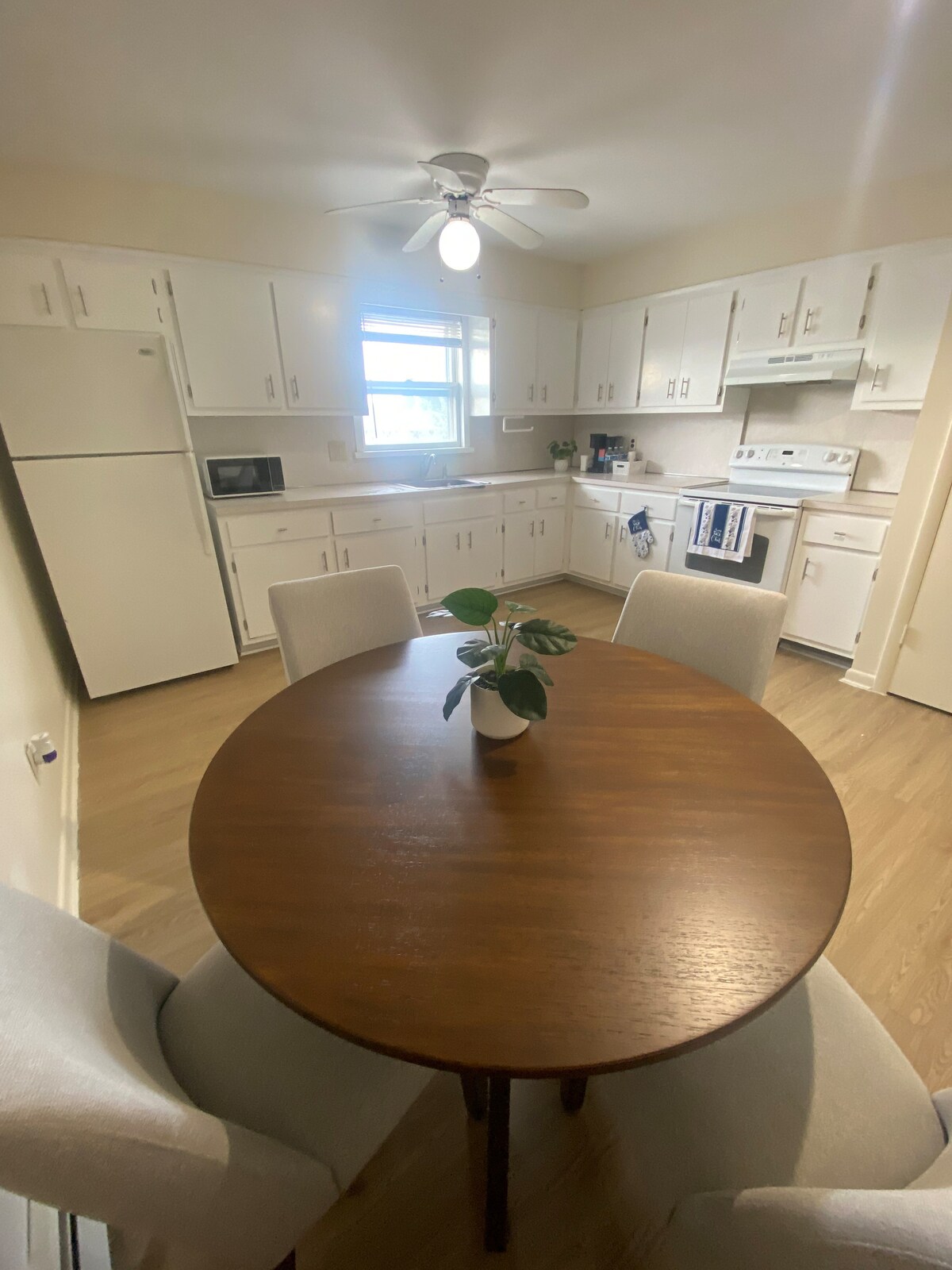 Diese neu renovierte Wohnung im 2. Stock mit modernem, schickem Dekor bietet alles, was du brauchst – eine voll ausgestattete Küche mit Edelstahlgeräten, eine Keurig-Kaffeemaschine, eine Waschmaschine und einen Trockner, eine große Couch und einen großen Fernseher. Es gibt Platz für bis zu 3 Personen in dieser Wohnung mit 1 Schlafzimmer und 1 Badezimmer (die 3. Person kann auf der großen, bequemen Couch untergebracht werden). Codierter privater Eingang vor dem Haus. Genieße auch die Annehmlichkeiten im Freien.