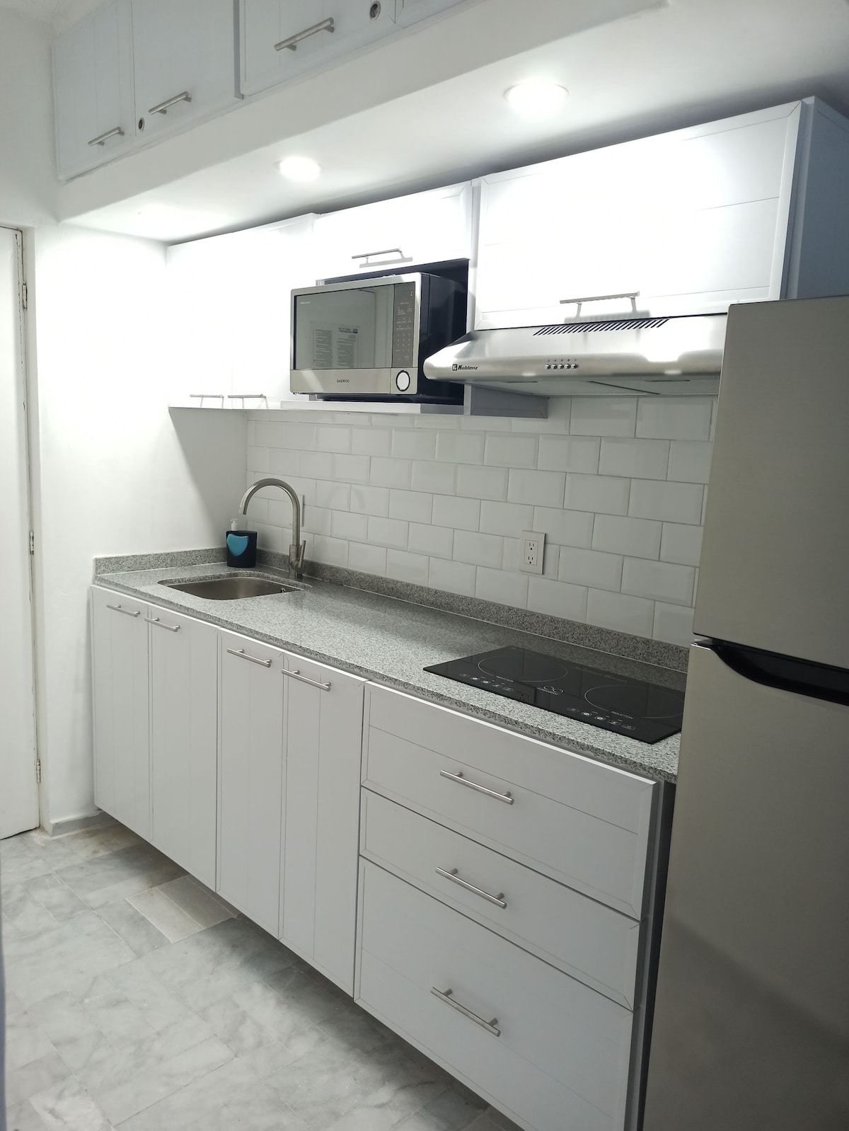 Wohnung im Hauptboulevard im touristischen und kommerziellen Bereich von Manzanillo, auf der einen Seite von Sams Club, nur 80 m vom Strand entfernt, nur wenige Schritte von den besten Bars, Clubs und Restaurants von Manzanillo, 900 m vom besten Einkaufszentrum von Manzanillo "Plaza Punto Bahia", wo Sie Kinos, Restaurants, Kaufhäuser finden, Zugang mit elektronischer Schlüsselkarte, nur 10 Minuten vom Busbahnhof und 40 Minuten vom Flughafen entfernt, in Suites Las Palmas.