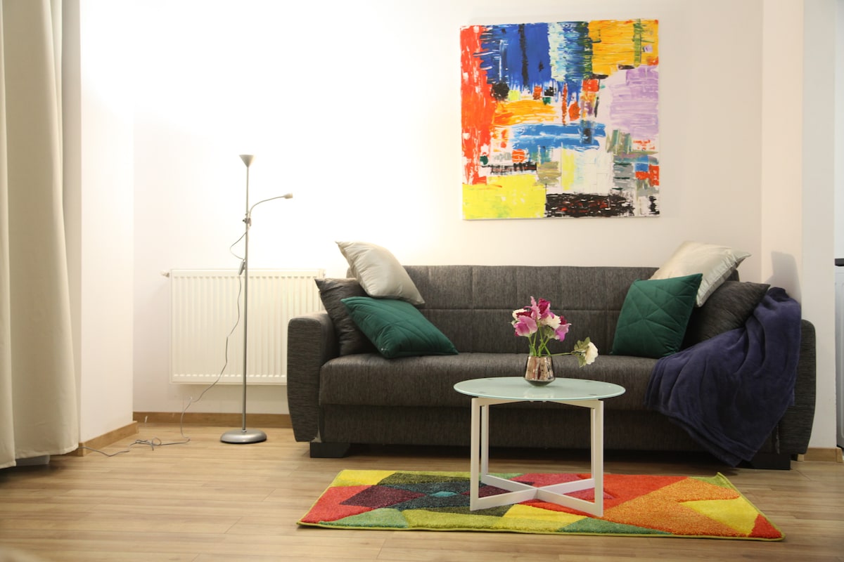Schöne und gemütliche Wohnung. Die Unterkunft: Sehr geräumig, mit 2 Schlafzimmern, einem offenen Raum (Wohnzimmer + Küche), einem Badezimmer und 2 Balkonen. Kostenloses WLAN, TV, Kaffee und Waschmaschine sind einige Annehmlichkeiten, mit denen du dich wie zuhause fühlst. Wir stellen jedem Gast Handtücher zur Verfügung. Es gibt einen 3 Gehminuten entfernten Busbahnhof, der dich direkt ins Stadtzentrum bringen kann. Die Unterkunft wurde kürzlich renoviert und heißt dich willkommen, um deine Zeit in Cluj zu genießen!