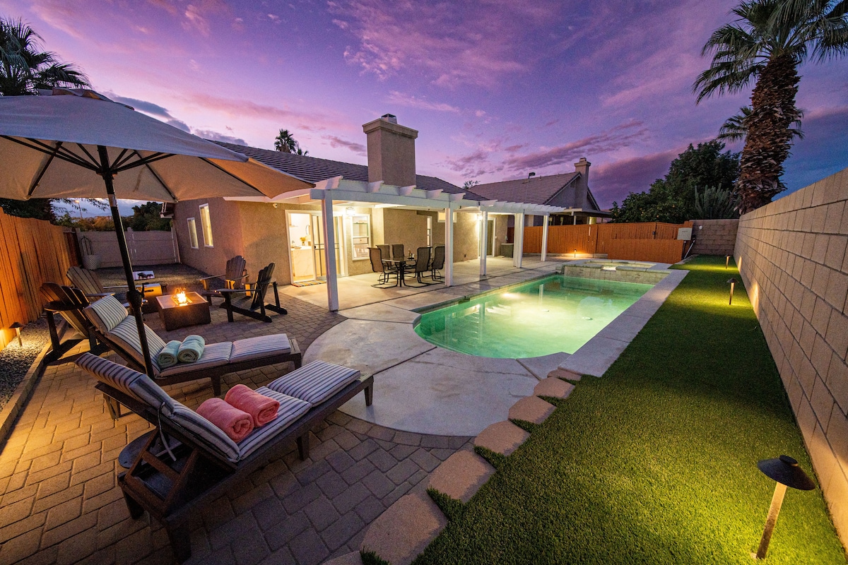 Erlebe ultimativen Luxus in diesem Traumhaus in der Wüste, das dich verzaubert machen wird! Dieses Haus ist ausschließlich für Ferienunterkünfte geeignet und verfügt über einen komplett renovierten Hinterhof für unvergesslichen Spaß. Lass die fesselnden Bilder für sich sprechen, aber die wahre Magie passiert, wenn man hineintritt. Mit einer voll ausgestatteten Küche, bereitgestellten Handtüchern und einer Reihe von Annehmlichkeiten wird jedes Bedürfnis erfüllt. Genieße Spiele, brandneue Möbel und sorgenfreie Entspannung am Pool und Spa.