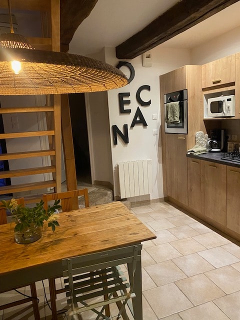 La Konciergerie lädt Sie ein, in diesem komplett renovierten und geschmackvoll ausgestatteten Ferienhaus zu übernachten, das sich in einer ruhigen Gegend in der Nähe von Geschäften und Hauptverkehrsstraßen befindet Ideal für einen Urlaub oder einen geschäftlichen Aufenthalt, bietet es allen notwendigen Komfort, eine gut ausgestattete Terrasse und kostenlose Parkplätze. Nur 20 Minuten von den Stränden von Fouesnant und Concarneau entfernt