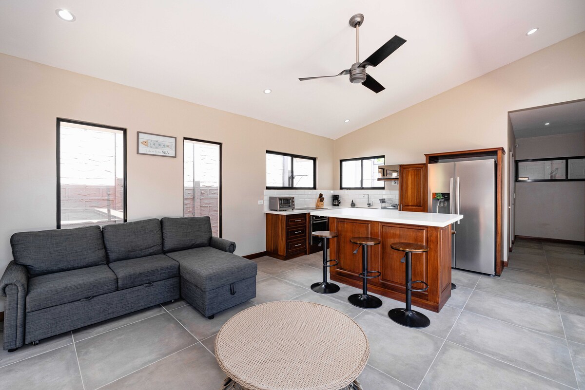 Willkommen in deinem tropischen Paradies in Tamarindo! Unsere charmante Wohnung mit einem Schlafzimmer, nur wenige Schritte von den sonnenverwöhnten Ufern entfernt. Aber die wahre Magie liegt direkt hinter der Haustür. Egal, ob du ein Surfer mit Wellen oder ein Strandcomber bist, das gemütliche Bad nimmt, das warme Wasser von Tamarindo bietet den perfekten Spielplatz für Wasserabenteuer. Halte Ausschau nach den lokalen Wildtieren – du könntest Brüllaffen und neugierige Leguane beobachten, die deinem Aufenthalt einen Hauch von Naturwunder verleihen.