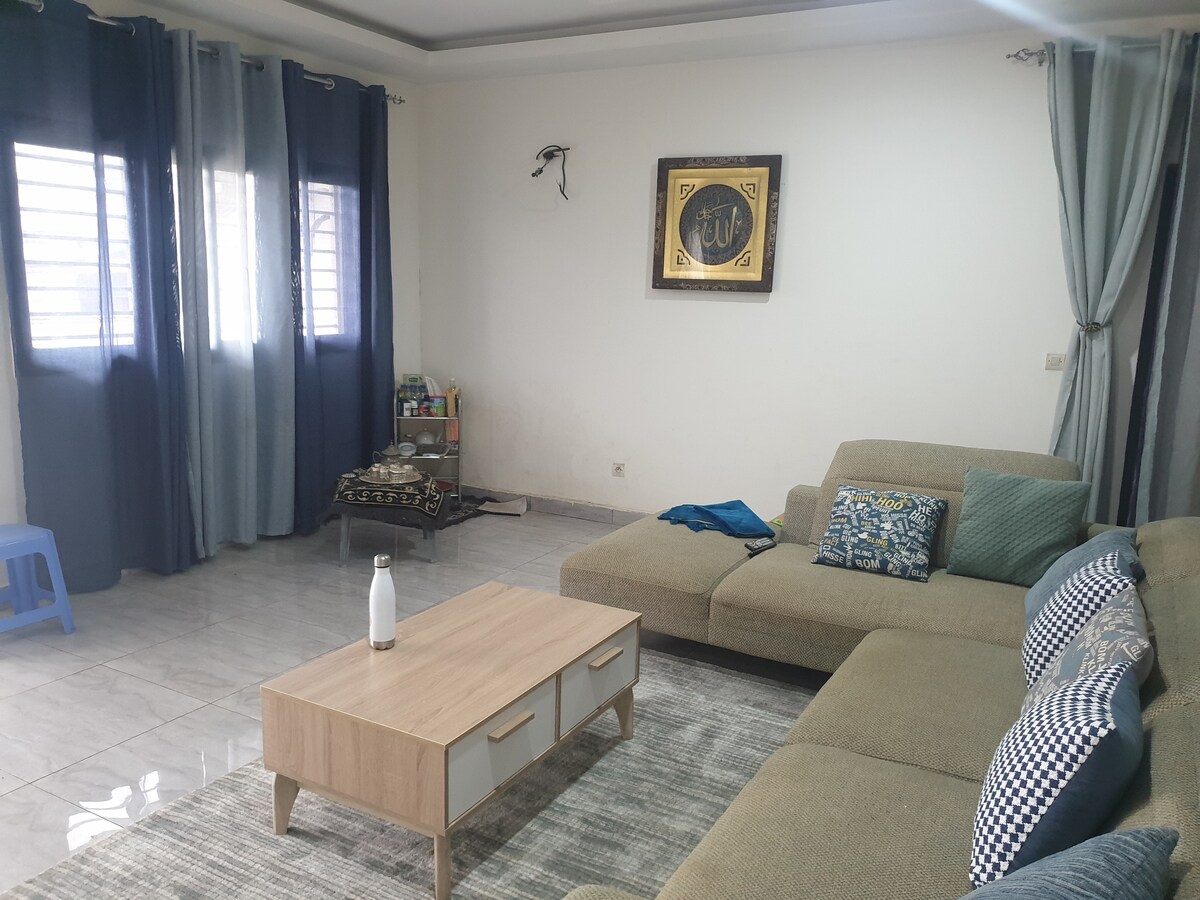 Détendez-vous dans ce logement calme et élégant. Situé dans une cité fermée avec des agents de sécurité disponibles 24h/24 7j/j avec un accès très facile . À proximité d’un super marché et des banques . Il y’a la possibilité de louer sans le jacuzzi.