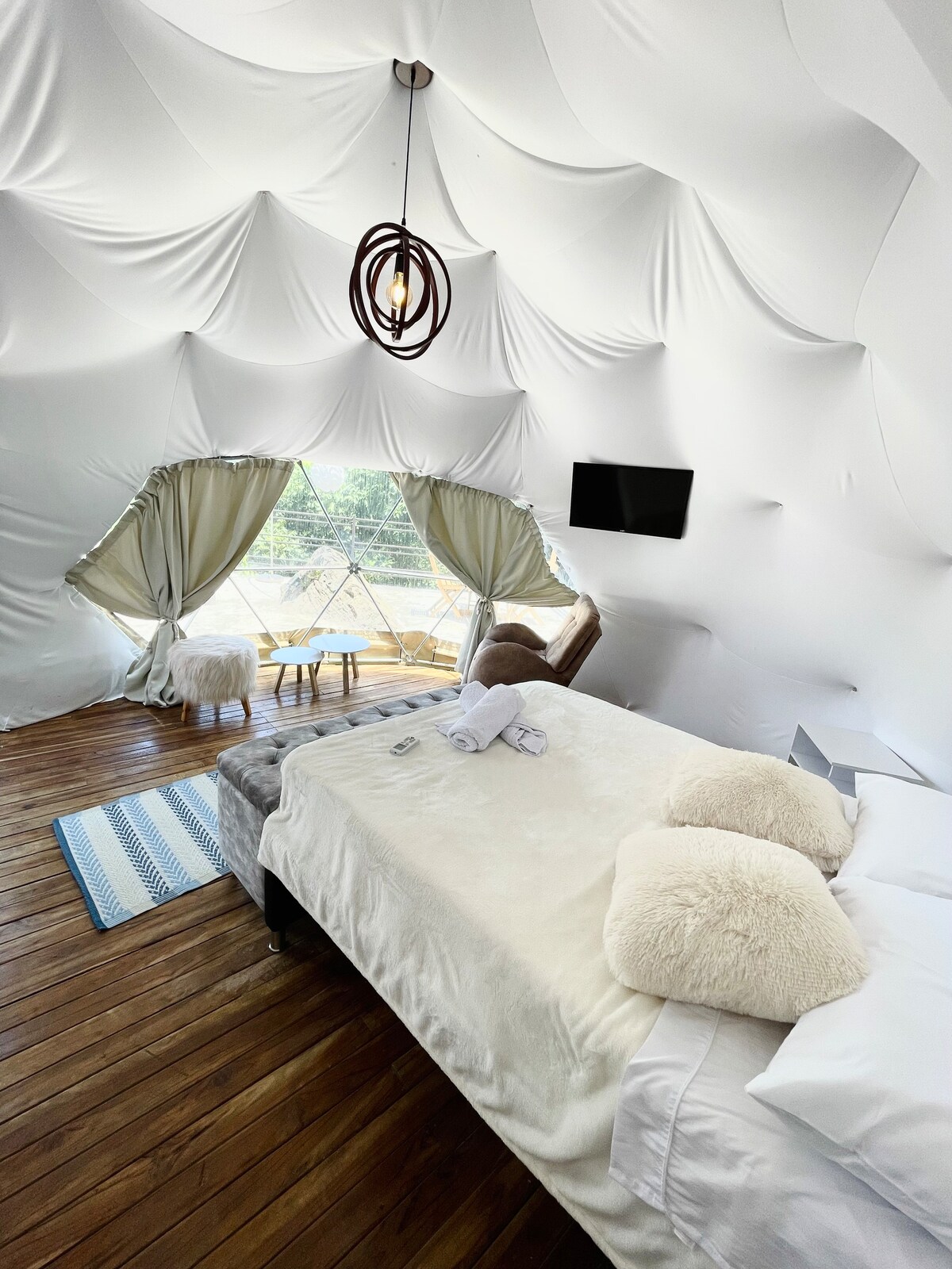 Erlebe ein magisches Erlebnis in unserer Kuppel, umgeben von Bergen, Wald und einem Fluss mit privatem Zugang. Wachen Sie mit dem Gesang der Vögel auf, entspannen Sie sich mit dem Rauschen des Wassers und genießen Sie die Privatsphäre und Romantik dieses Rückzugsortes. Ergänze deinen Aufenthalt mit lokalen Speisen, die mit Liebe zubereitet werden, während du dich entspannst und dich mit der Natur in ihrer reinsten Form verbindest.