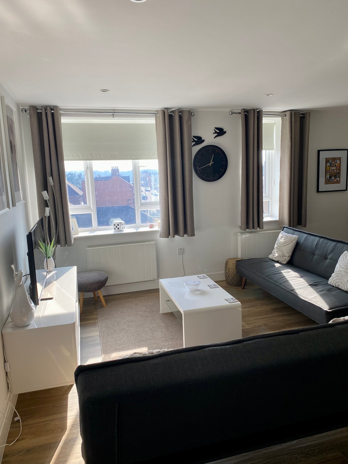 ROOFTOPs ist eine helle, betreute Wohnung in perfekter Lage für alle, die Milton Keynes/Bletchley besuchen. Die geräumige Lounge/das Esszimmer eignet sich ideal zum Entspannen oder um Kontakte zu knüpfen. Kostenloses Netflix und WLAN inklusive. Handtücher, Shampoo usw. werden bereitgestellt. Das Schlafzimmer verfügt über Einbauschränke und ein komfortables Super-Kingsize-Bett mit Taschenfederkern. Wenn drei Personen übernachten, gibt es ein Schlafsofa in der Lounge. Ein eigenständiger Check-in ist möglich. Bitte beachte, dass sich vor der Haustür eine Überwachungskamera befindet.