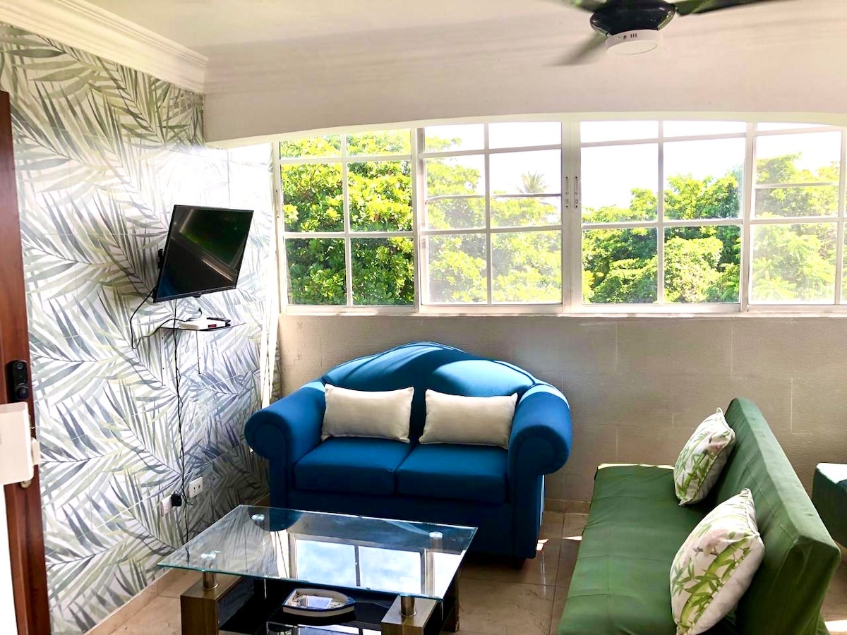Relájate en esta escapada única y tranquila. Lugar de relajación en donde la vista al mar y la montaña predominan. Apartamento equipado con todo lo necesario para su comodidad. WiFi super rápido. Cuenta con cocina totalmente equipada, terraza con vista a la montaña, terraza con vista al mar, dormitorio con acondicionador de aire, smart tv en la sala y la habitación con Netflix incluido.