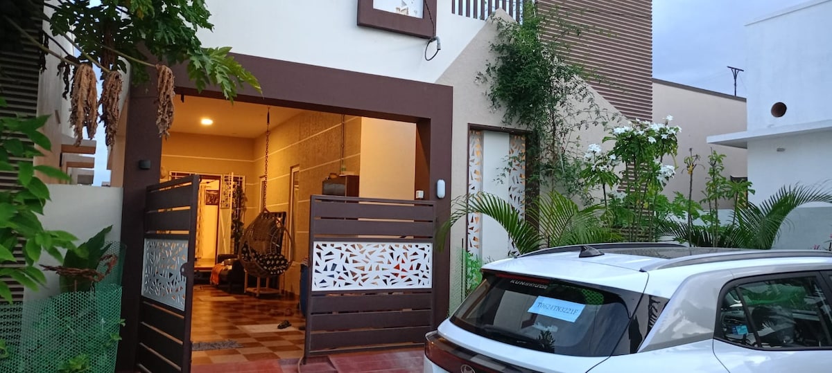 Ein ruhiger, grüner Rückzugsort, nur 30 Autominuten vom Isha Yoga Center entfernt – ideal für spirituelle Reisende oder Familien, die eine friedliche Pause inmitten der Natur suchen. Diese unabhängige 2BHK-Villa befindet sich in einer ruhigen und sicheren Wohngegend, umgeben von üppigem Ackerland auf beiden Seiten. Du wachst mit Vogelgezwitscher und frischer Luft auf – und hast trotzdem allen modernen Komfort.