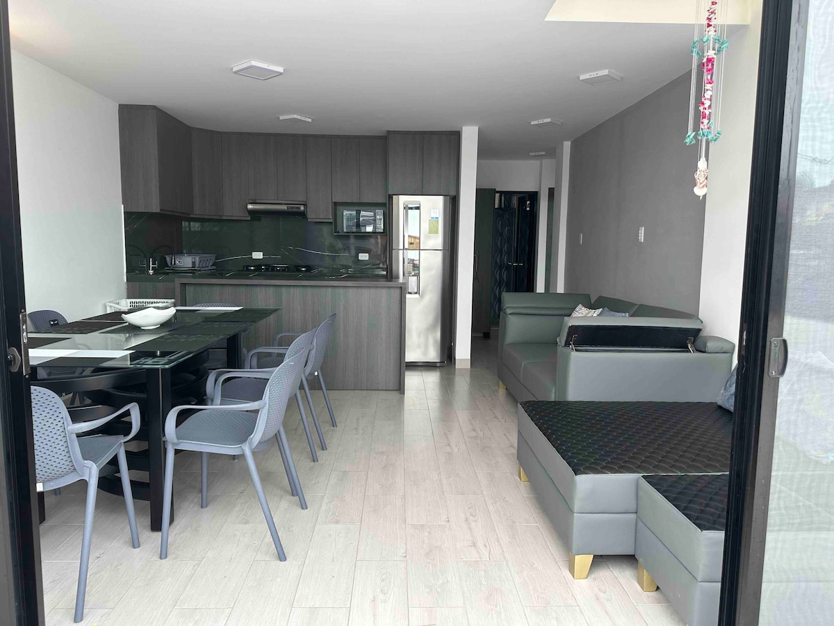 Stell dir eine Traumwohnung am Strand von Cojimies vor, perfekt für einen fabelhaften Urlaub. Dieses Küstenparadies bietet alle notwendigen Annehmlichkeiten, um sich zu entspannen und die Umgebung zu genießen. Mit gemütlichem und modernem Interieur ist das Apartment voll ausgestattet. Die Gemeinschaftsbereiche, wie das Wohnzimmer und das Esszimmer, verbinden sich harmonisch mit einem geräumigen Balkon, von dem aus du mit Blick auf das Meer frühstücken kannst, indem du in die Ruhe der Wellen und die Meeresbrise eintauchst.