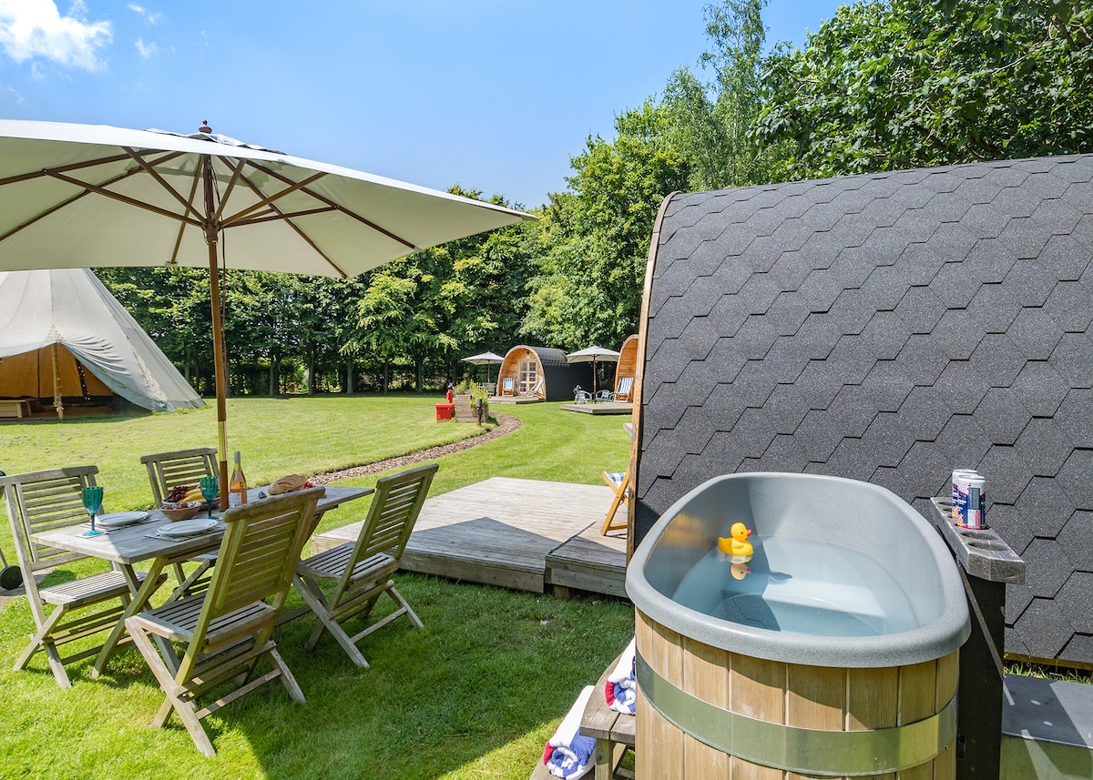 Malting Farm Rustic White Cabin with Hot Tub