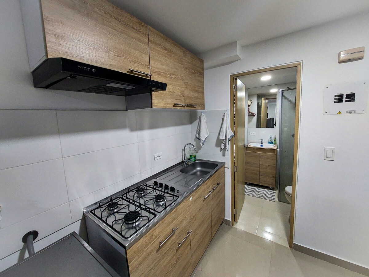 Neues Apartaestudio La Flora – Norte Cali, ruhiger Sektor, prominenter Stadtteil. Gastronomie, Tourismus, Geschäftsviertel und Einkaufszentren wie Chipichape, Grünflächen – Parque La Flora. Flughafen in der Nähe. Wohnung (31 M2) - Kühlschrank - Waschmaschine/Trockner - Küche - Kaffeemaschine - Mikrowellenofen - Klimaanlage - Smart-TV - Doppelbett - Schlafsofa -PC-Schreibtisch/Stuhl -Frühstückstisch und 2 Stühle - Couchtisch -Internet WLAN 200 Megabyte - Kabelfernsehen - Netflix - Amazon Prime