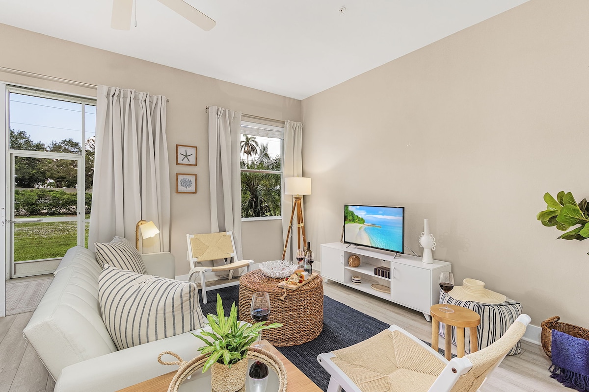Willkommen in deinem perfekten Kurzurlaub in Neapel! Dieses wunderschön renovierte Stadthaus mit 2 Schlafzimmern und 2 Badezimmern verbindet modernen Komfort mit entspannter Stimmung in Florida. Nur 2,5 Meilen von Geschäften und Restaurants an der 5th Avenue und weniger als 4 Meilen von Naples Beach entfernt- du bist im Herzen von allem. Verbringe deine Tage damit, dich zu sonnen, zu paddeln oder Wanderwege in der Nähe zu erkunden. Am Abend kannst du eine kurze Radtour hinunter zum Celebration Park machen, wo Food-Trucks, Live-Musik und Getränke am Wasser warten.