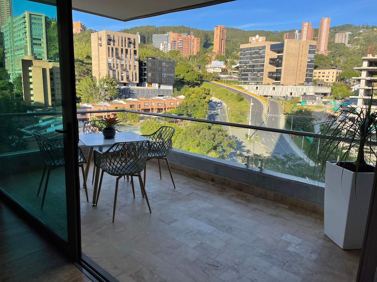 Apartamento completo con increíble vista de la ciudad. Decorado y amoblado con todo lo necesario para una estancia óptima. Estratégicamente ubicado en un moderno edificio con vigilancia las 24 horas, seguridad perimetral, elevadores, estacionamiento, acceso a la piscina, terraza, baño de vapor y gimnasio. Ubicado cerca a los restaurantes, bares, cafeterías, supermercados, boutiques y zona comercial del Lleras, Provenza, Manila y Astorga en el Poblado.
