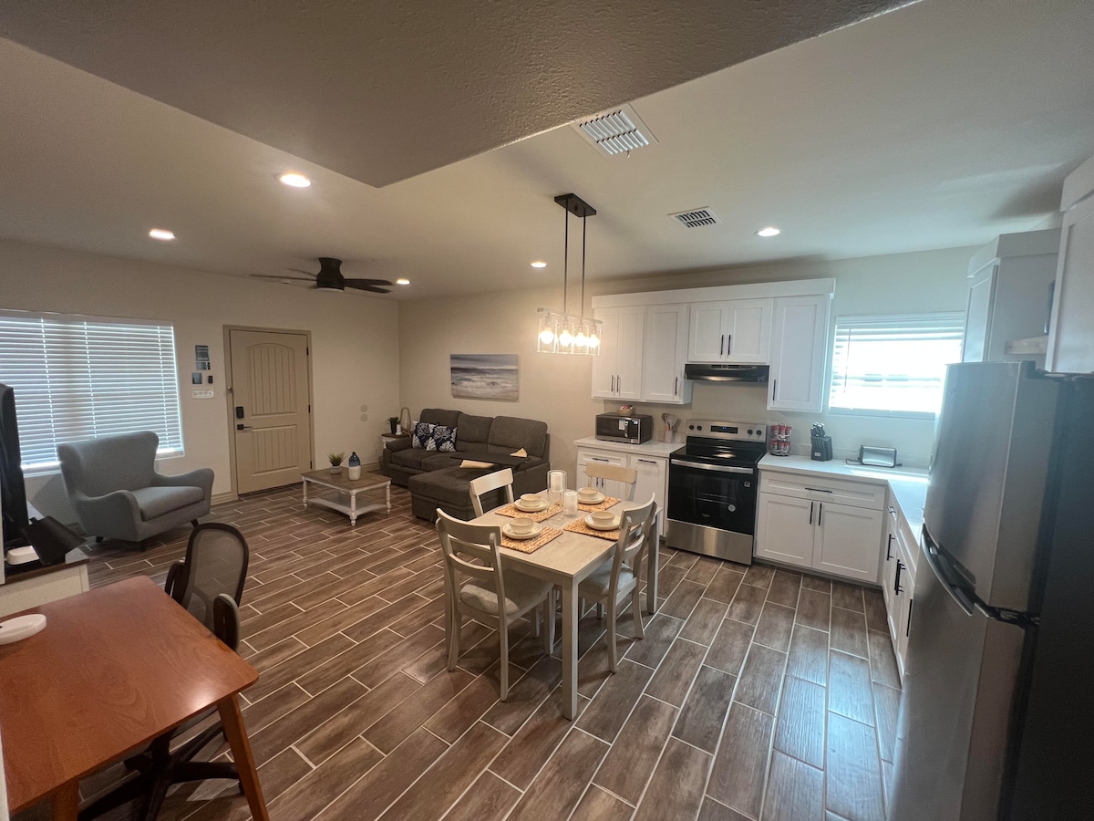 Ein komplett renoviertes Ferienhaus mit allen neuen Möbeln und Geräten. Wir haben viel Zeit und Mühe investiert, unsere Unterkunft zu perfektionieren, damit du dich wie zuhause fühlst. Unser Ferienhaus verfügt über eine gemütliche Küstenatmosphäre, zwei Kingsize-Betten, einen 65-Zoll-Smart-TV, Highspeed-Internetzugang, Sicherheitskameras und Lichter nur draußen (keine Kameras im Haus), Schnellladeeinrichtungen und andere Annehmlichkeiten für Kurz- oder Langzeitaufenthalte.