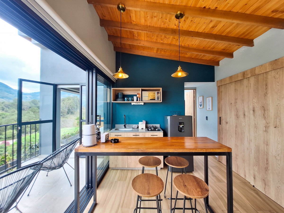 FORESTA is a modern cabin created with love for you to have an unforgettable stay in the middle of nature, with total comfort. Enjoy the privileged views from the deck, chill out in the jacuzzi, watch the dozens of birds that visit us, or have a chat by the fireplace in the living room. FORESTA is a great launchpad to explore Guatape, climb the Rock and do kayaking, jet-skiing, wakeboarding, sailing, paraglading, horseback riding, hiking, helicopter tours or ATV rides. You choose!