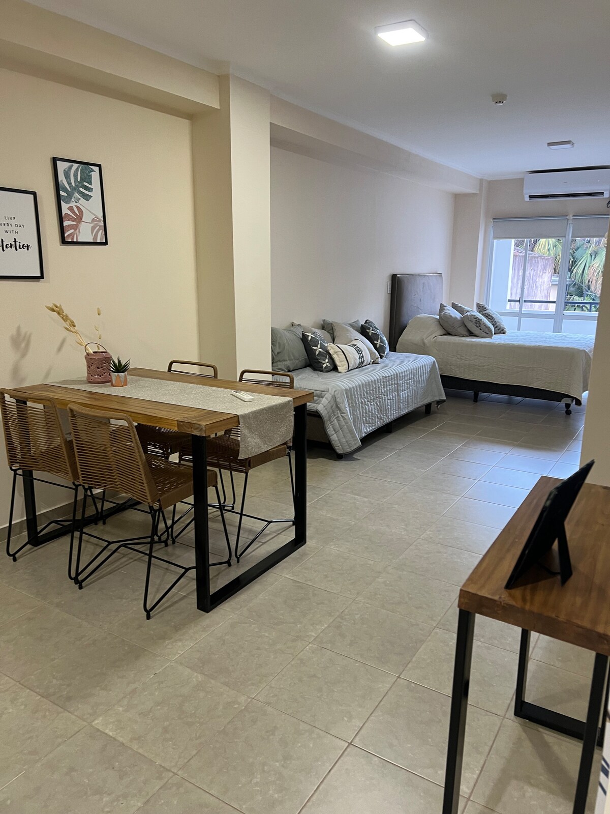 Bienvenido a este moderno monoambiente , diseñado para ofrecerte la máxima comodidad tanto si venís por negocios como por placer. Con mobiliario nuevo de alta calidad y una ubicación estratégica, este espacio es el refugio ideal en la ciudad. Equipado con una cómoda cama doble o la opción de configurar dos camas twin, adaptándonos a tus necesidades de viaje. Cocina Premium: Totalmente equipada con electrodomésticos modernos y vajilla , ideal para quienes disfrutan cocinar como en casa
