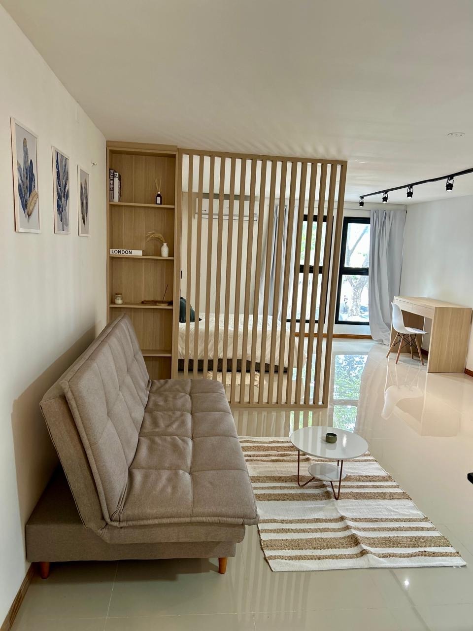 Zwei Ufer Boutique Espacio Calma 305 Einzelzimmer in Premium-Kategorie Gebäude auf dem rambla mit Annehmlichkeiten, Fitnessraum, In/out Pool, Massageservice,Sauna,Jacuzzi, King Sommier mit Trennmöglichkeit , Schlafsofa ,Split Kälte/Wärme, Badezimmer, Balkon, Mikrowelle, Blick auf den Fluss