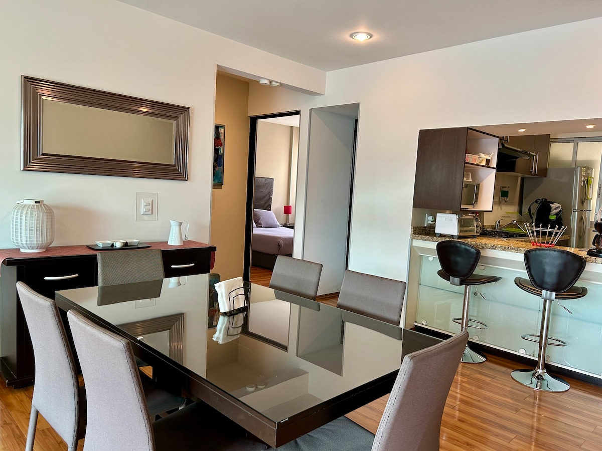 Luxus-Loft-Wohnung, ideal für kleine Familien, Paare oder Geschäftsreisen, nur einen Block vom WTC entfernt und in der besten Gegend von Colonia Nápoles, mitten in allen Kinos, Restaurants, Theatern, Metrobus-Station, Pepsi Center. Im ersten Stock und Parkplatz für ein Auto, Luxus und Komfort zu einem günstigen Preis.