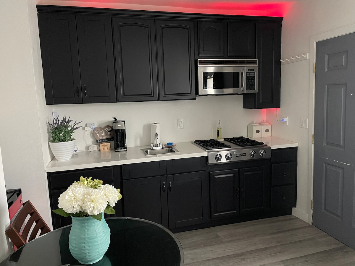 New construction 2 Bed 1 Bath Modern Hidden Gem! This Guesthouse has its own private yard, entrance & driveway. At just under 600sqft, No stone was left un-turned when Designing this space. This open concept Home features a living area with a Sleeper Sofa, 50" Roku TV, 4 chair dining table, A Remote controlled AC & Heat system. Full Kitchen with Microwave, Oven, Fridge & Washer/Dryer. Full Bathroom with Tub & Shower. 2 bedrooms, 1 with a queen bed & the other w 2 twin beds.