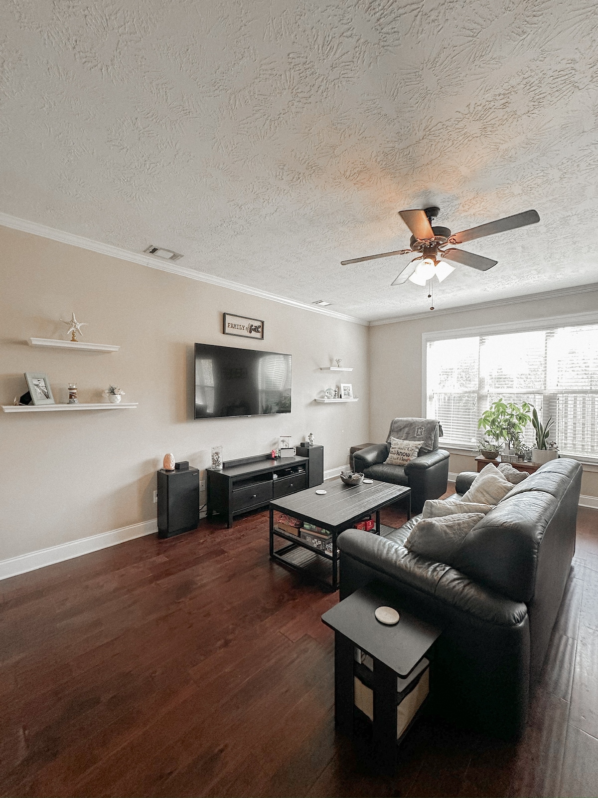 Three King Bedroom – Plush mattresses, blackout curtains, and plenty of space to stretch out Work-Friendly – Fast Wi-Fi SunsetViews – Relax on the deck and soak in the sunset over Grovetown Smart TVs – Stream your favorite shows in the living room or any bedrooms Fully Equipped Kitchen – Everything you need for cooking meals at home Cozy Living Room – fireplace, comfy seating, and southern charm