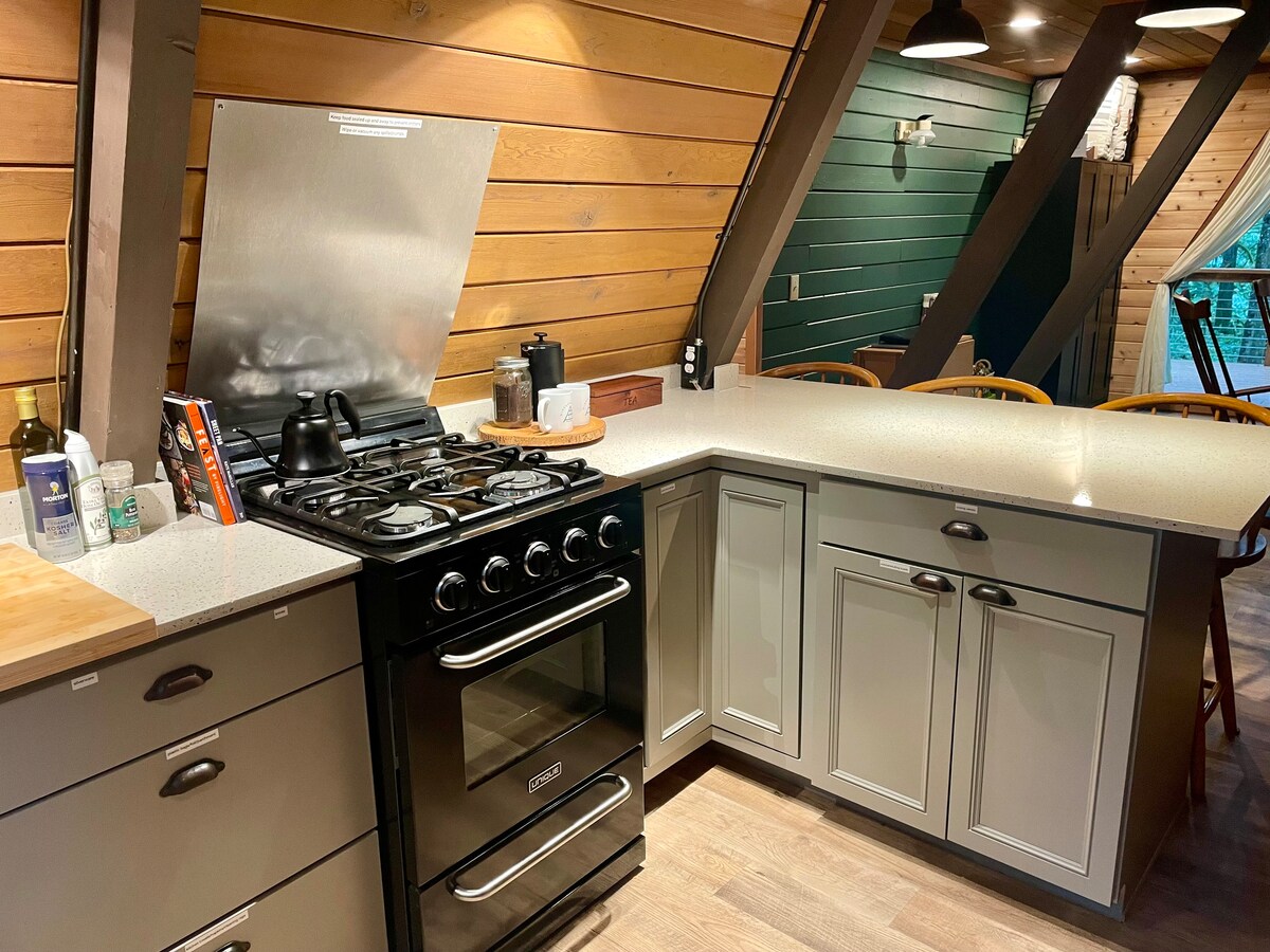 Eingebettet in einen hochragenden Hain von 100 Jahre alten Douglasien bietet dieses maßgeschneiderte Baumhaus alle Annehmlichkeiten, die du in einem luxuriösen Mount Rainier-Urlaub erwarten würdest, während du von oben in die entspannende Schönheit des Waldes eintauchst. Lies ein Buch im hängenden Netzloft im Obergeschoss, mach es dir vor dem Kamin gemütlich, um deinen Lieblingsfilm anzusehen, oder lass dich am Schreibtisch inspirieren. Das Baumhaus liegt auf einem eigenen, halben Hektar großen Privatwald und ist nur wenige Gehminuten von lokalen Geschäften entfernt.