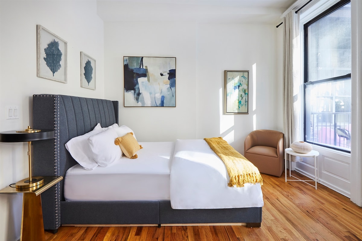 Willkommen in unserer wunderschönen Wohnung im Herzen von Harlems historischer Strivers 'Row, die eine charmante Scheunentür, moderne Annehmlichkeiten und den Komfort von zuhause bietet. Dies ist eine der begehrtesten Nachbarschaften, umgeben von wunderschönen Brownstones, lebendiger Kultur und renommierten Restaurants. Ganz gleich, ob du geschäftlich oder privat hier bist: Unser gemütlicher Rückzugsort ist der perfekte Rückzugsort für deine eigenen. Du hast: schnelles WLAN Waschmaschine und Trockner zum Selbst-Check-in Voll ausgestattete Küche professionell gereinigt