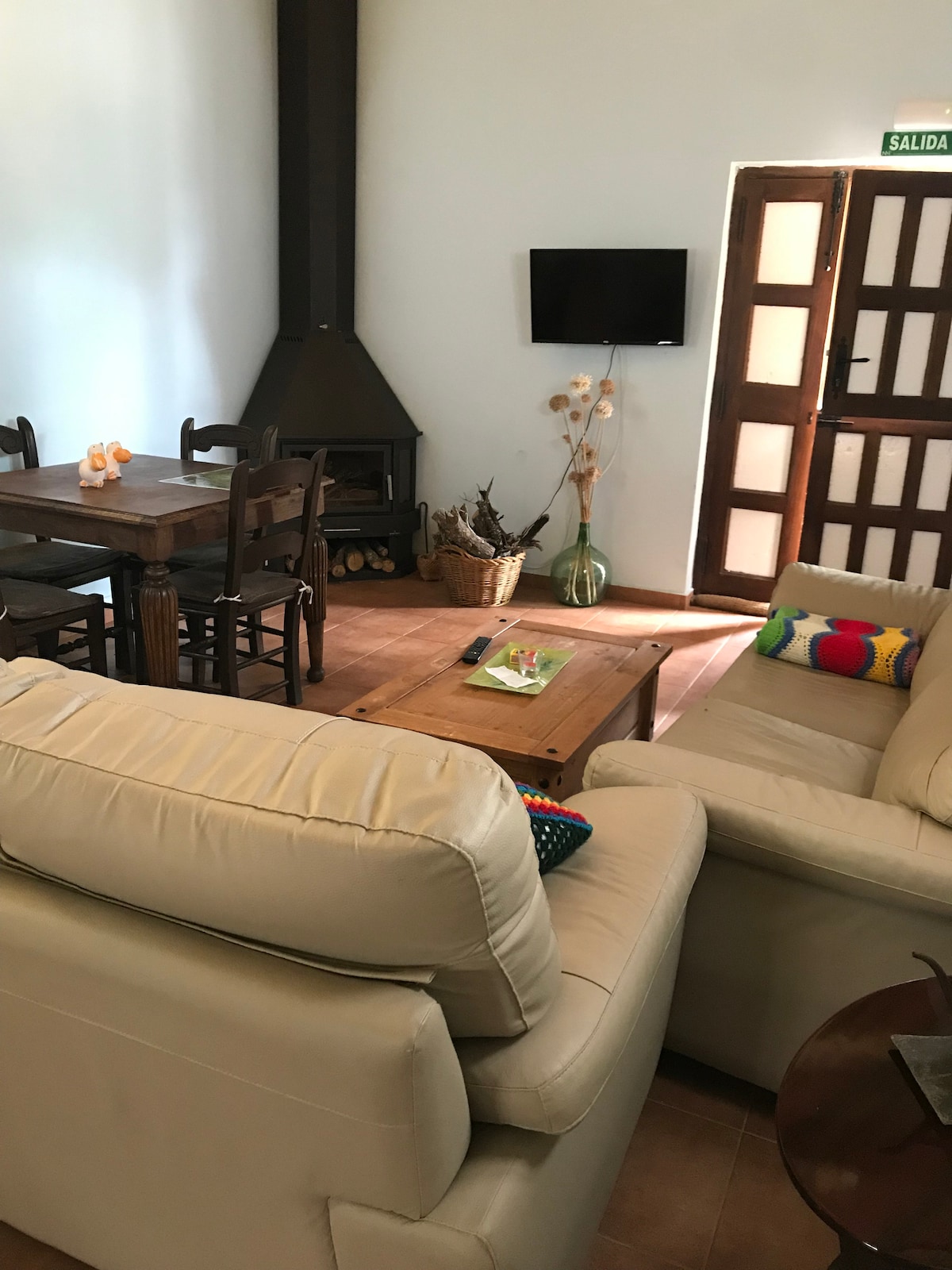 PARCELA CERRADA CON TRATAMIENTO ANTI ORUGAS Murmullo del río..Naturaleza a tope..Relax..Veladas en compañía de la luna... Cielos únicos.. Vistas despejadas al majestuoso monte de Sta Catalina. Águilas .. paseos al río que está a 50 mts... olor a verde.. casa acogedora.. hamacas paraguayas.. barbacoa .....piscina en la urbanización ... noches frescas.. ... aire puro... mañanas tranquilas y además todo lo que necesitas: wifi, aire acondicionado, café, TV, juegos de mesa