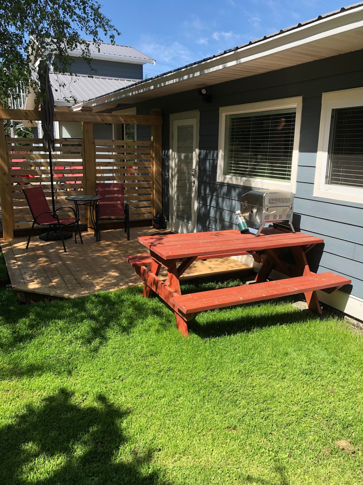 Eine stilvolle Gästesuite im Herzen der Stadt Courtenay. Diese Suite mit einem Bett und einem Bad befindet sich im Erdgeschoss und ist voll ausgestattet! W/D, voll ausgestattete Küche, eine tiefe Badewanne, beheizte Badezimmerfliesen und alles brandneu. Wir sind noch nicht mit unserer Landschaftsgestaltung fertig, aber wir haben einen aufblasbaren Whirlpool in einem niedlichen, ausgewiesenen Terrassenbereich. Die Suite liegt eine 30-minütige Fahrt vom Mount Washington und nur wenige Minuten von der Innenstadt, Wanderwegen, Flüssen und Seen entfernt. Komm und genieße alle Extras, die wir bieten, und es ist keine Reinigung erforderlich. Seid unsere Gäste!