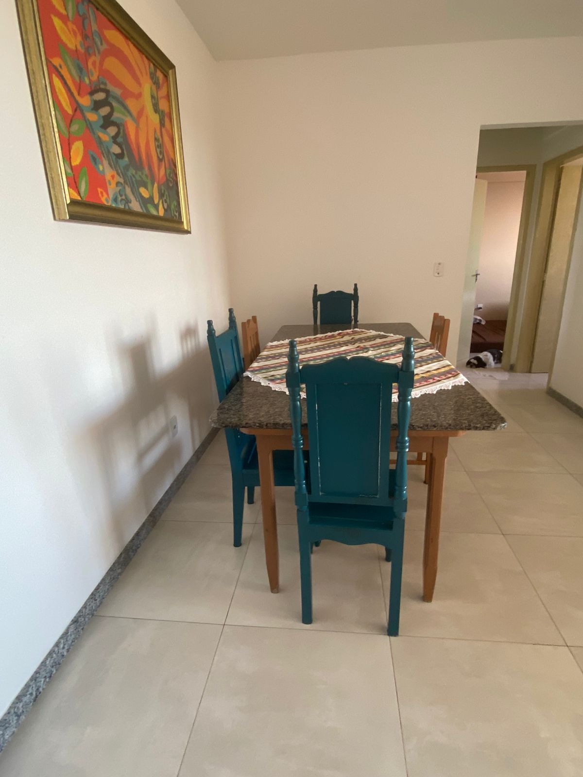 Apartamento possui: um quarto com suíte e ar condicionado e um quarto com ventilador, (não possui outro banheiro). Possui 1 lance de escadas, é próximo ao centro (1,4 km) e próximo à BR 101, está a 12km da praia de Guriri. Próximo a supermercados, padarias, posto de combustível. não possui estacionamento porém o lugar é seguro para estacionar na rua, pois fica ao lado do batalhão da PM. Ambiente muito espaçoso e confortável.