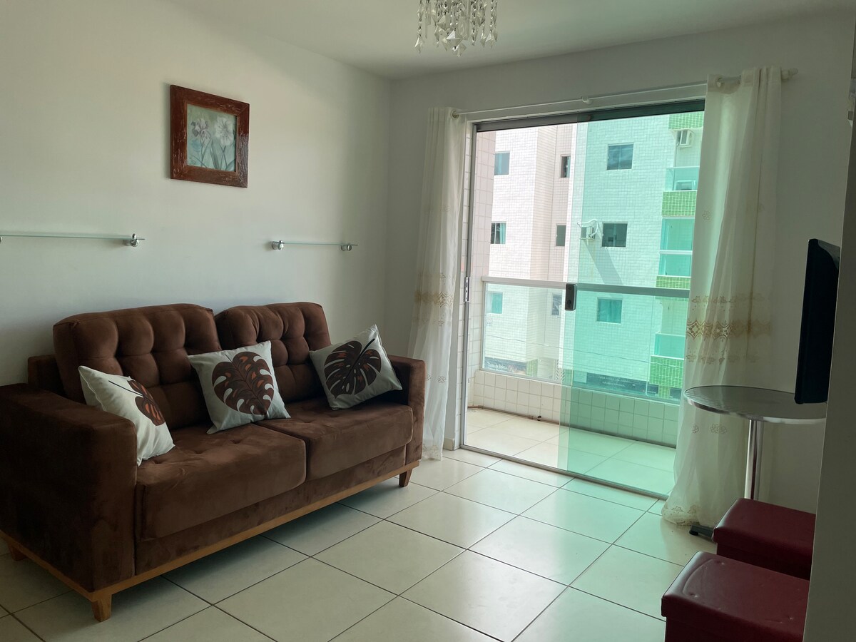 apartamento na praia de jacumã, aconchegante, limpo e arejado. * Cozinha: sanduicheira, cooktop a gás, geladeira, cuscuzeira, liquidificador, e demais utensílios; * Sala: TV 32 polegadas, WIFI de alta velocidade, sofá, mesa de jantar; * Quarto: 1 cama de casal, 2 camas de solteiro com uma auxiliar , guarda-roupa, ventilador, uma suíte com chuveiro elétrico, espelho; * Banheiro social: espelho; *1 Vaga de garagem privativa *Muito bem localizado a 100M da praia de JACUMÃ. *Não pode fumar.