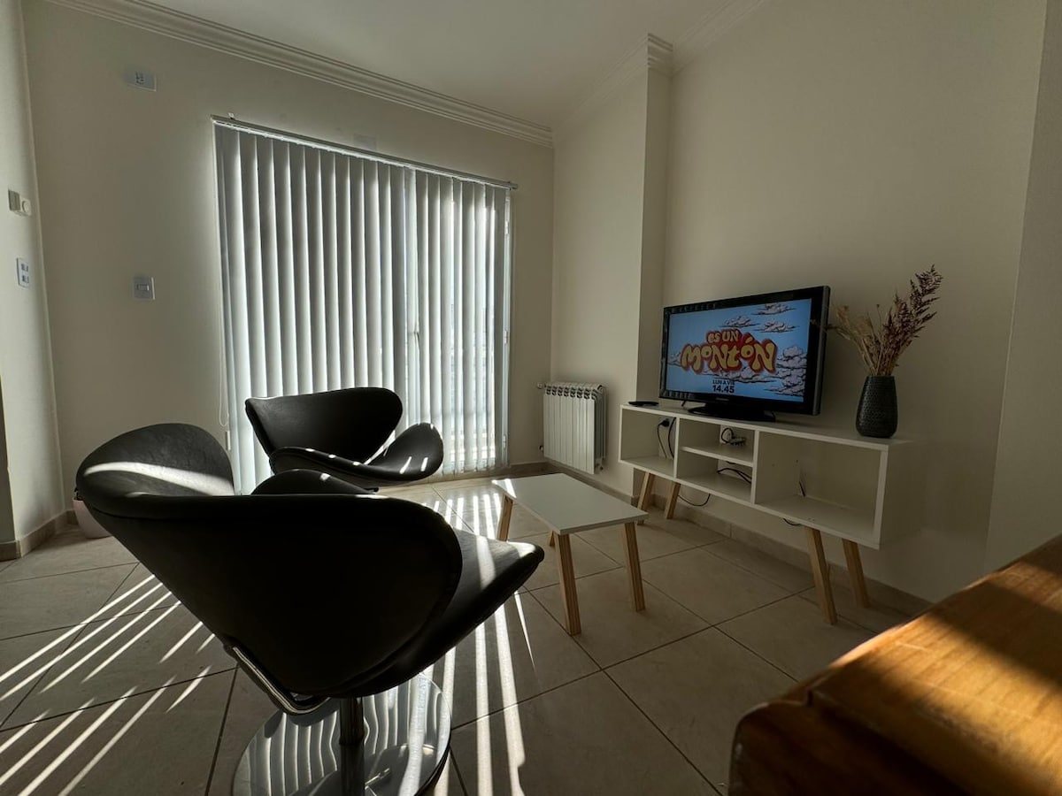 Genieße einen komfortablen und funktionalen Aufenthalt in dieser modern eingerichteten Wohnung. Helle Umgebungen, warmes Dekor und praktische Möbel sorgen dafür, dass Sie sich wie zu Hause fühlen. Ausgestattet mit schnellem WLAN, Smart-TV und einer voll ausgestatteten Küche ist es ideal zum Arbeiten oder Entspannen. In einer strategischen Gegend von Neuquén gelegen, in der Nähe von Geschäften, Verkehrsmitteln und Grünflächen. Perfekt für Reisende, Berufstätige und Paare.