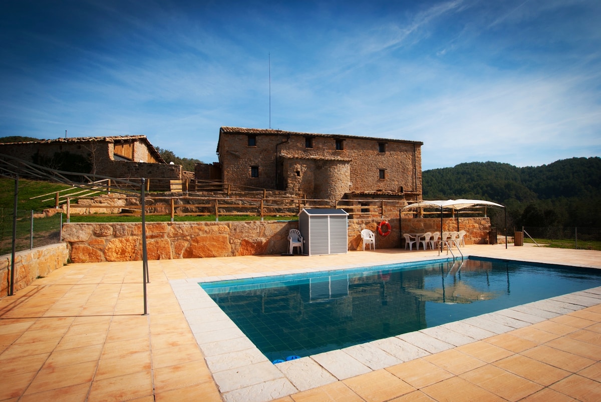 Mas de l'Aranyó - Eco Wellness Spa Landhaus für ländlichen Tourismus mit Spa, beheiztem Pool, Sauna und nordischer Badewanne in der Segarra. Gesamte Vermietung, keine anderen Gäste, keine geteilten Bereiche Umgeben von Feldern: ein einzigartiger Blick auf die Burgen Aranyó und Montcortés. 3 Hektar Steineichenwald, Olivenbäume und großer Garten mit natürlichem Schatten im Sommer. Ideal, um Natur zu genießen und in der Ruhe mittelalterlicher Dörfer zu entspannen