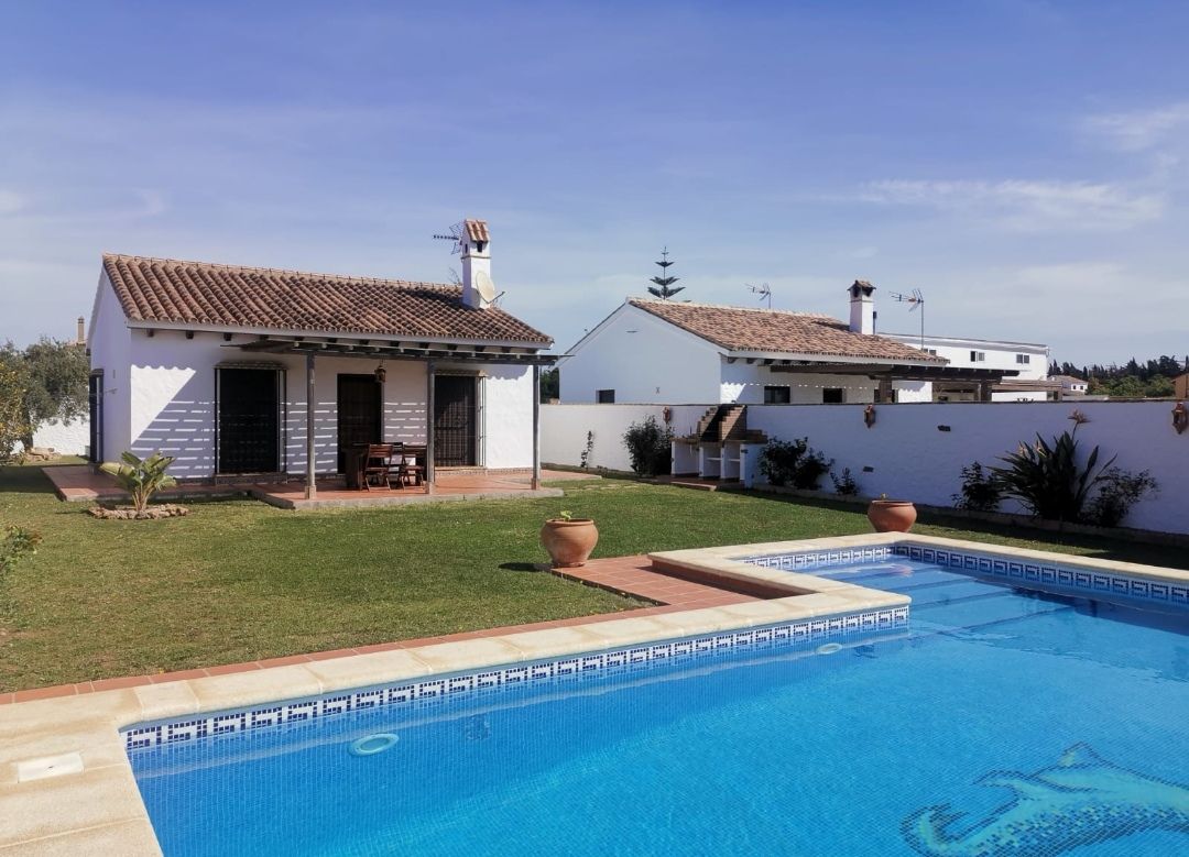 Villa Amura, charmantes Landhaus mit schönem Garten und privatem Swimmingpool, am Strand und an den Buchten von Roche, ideal für Familien. Drei Schlafzimmer und zwei Badezimmer, Heizung und Klimaanlage im Wohnzimmer und im Hauptschlafzimmer, Smart TV., Sa. Wifi.