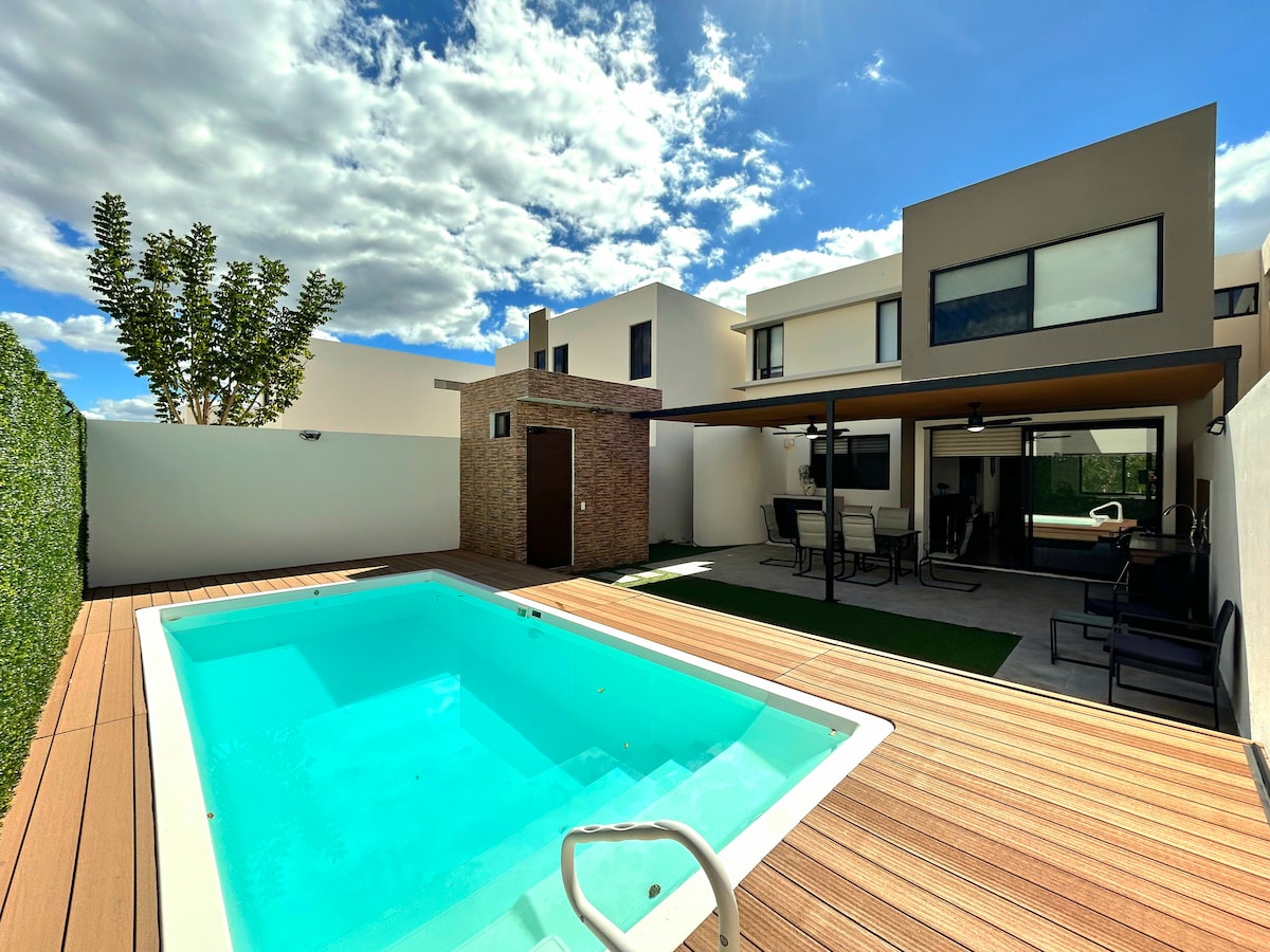 Entspannen Sie sich mit der ganzen Familie in diesem komfortablen Haus, in dem man Ruhe atmen kann. Genieße den Pool und alle Annehmlichkeiten, die Casa Tess im Norden von Mérida bietet. Die Unterkunft liegt strategisch günstig in der Nähe der besten Einkaufsplätze und Restaurants von Mérida und ist nur 20 Minuten vom Strand entfernt. In der Nähe von Cenoten und archäologischen Stätten kannst du die natürliche, kulturelle und gastronomische Schönheit von Yucatán entdecken.