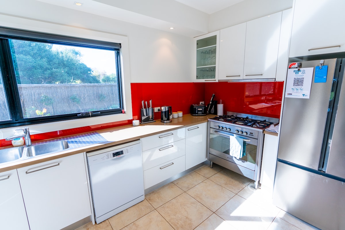 Willkommen bei Bliss@13thbeach. Dein ultimativer Rückzugsort auf der wunderschönen Bellarine Peninsula. Perfekt gelegen auf dem unberührten 13th Beach Golfplatz, in der Nähe von Barwon Heads. Dieses geräumige Luxus-Haus mit 5 Schlafzimmern bietet das Beste an Küstenfluchten, Weltklasse-Golf und Entspannung im Resort-Stil. Treten Sie ein und entdecken Sie weitläufige Innen- und Außenbereiche, die für Zusammenkünfte, Feiern oder einfach nur zum stilvollen Entspannen konzipiert sind. Eine voll ausgestattete Küche geht in lichtdurchflutete Wohnräume über.