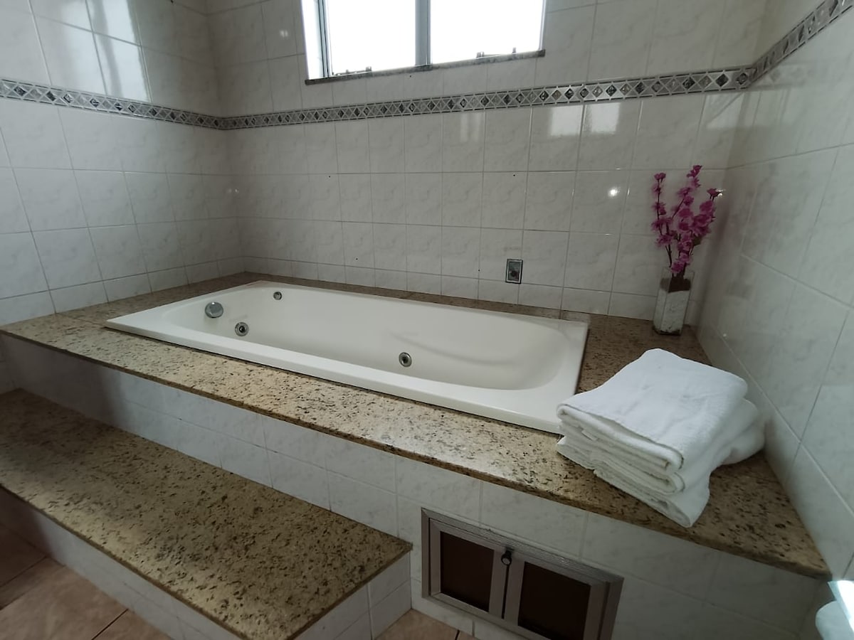 Die Suite befindet sich im Unterbezirk Chapada-Gemeinschaft Lavras Novas, auf dem Gelände der Gastgeberin Maria, ist 2 km von einem schönen Wasserfall entfernt. Es ist ein sehr ruhiger und angenehmer Ort, eine familiäre Umgebung, für Menschen, die eine komfortable rustikale Umgebung genießen möchten. Die Suite verfügt über 50 m² , verfügt über einen Whirlpool, einen TV, ein Queensize-Bett, ein Schlafsofa, eine Mikrowelle, einen Tisch und eine Minibar. Frühstück wird in der Küche der Gastgeberin Maria serviert und ist im Tagespreis enthalten.