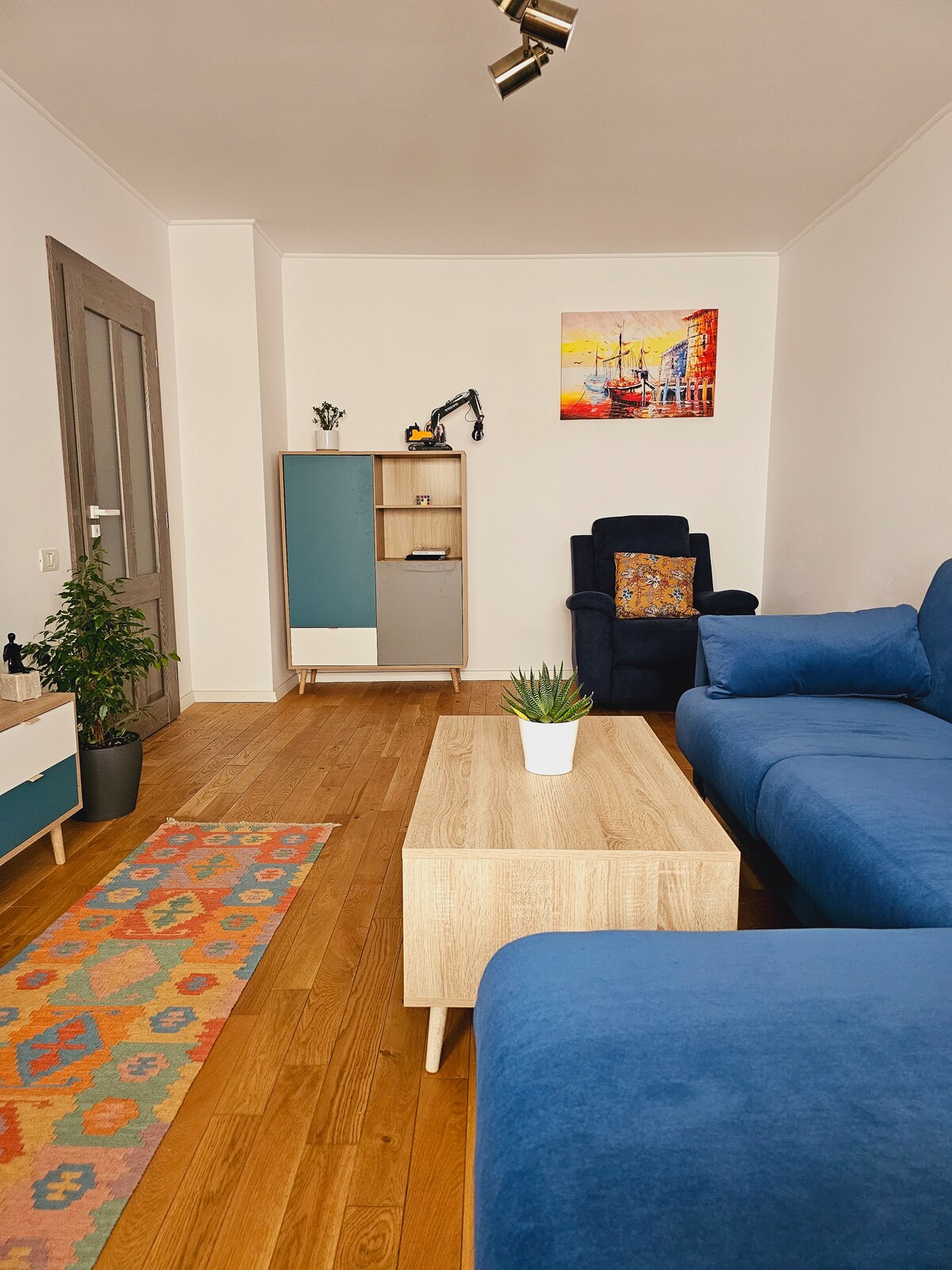Welcome to our cozy apartment that features two beautifully decorated rooms, a woody ambiance and a bunch of plants to create a refreshing atmosphere. The apartment can comfortably accommodate 4 adults and 1 child. The living room couch is not only an extensible one but fully transforms into a bed with its own mattress. The cozy living space, woody ambiance, and plants all around make this apartment a perfect retreat after a day of exploring the city or relaxing on the beach.