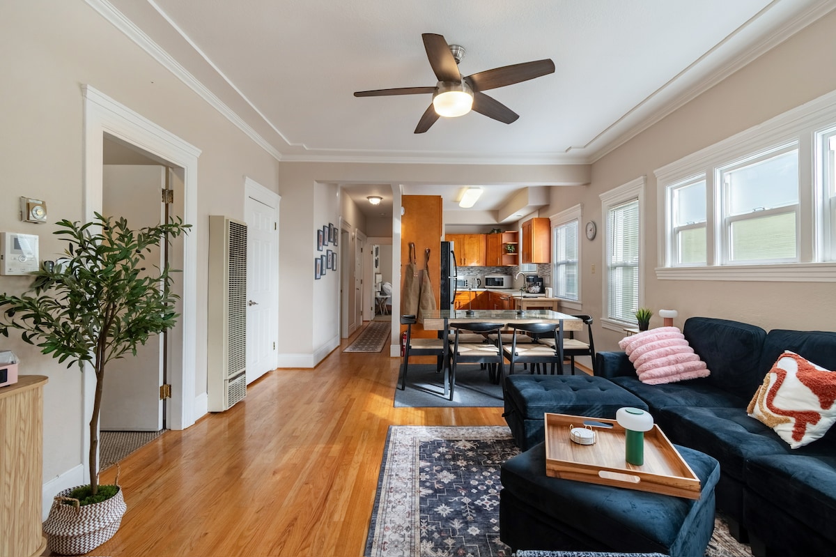 Casita Azul is a charming 110-year-old craftsman on the Berkeley/Oakland border. This light-filled upstairs apartment accommodates up to 5 guests and features: *A cozy breakfast nook and updated floors. *Refreshed kitchen and bath, plus washer/dryer. *Relaxing living room and bedroom with a desk for remote work. *Lush gardens for added charm. Perfectly located near Temescal, Rockridge & Berkeley Univ. with trendy shops, cafes, and restaurants, and easy access to San Francisco and wine country.