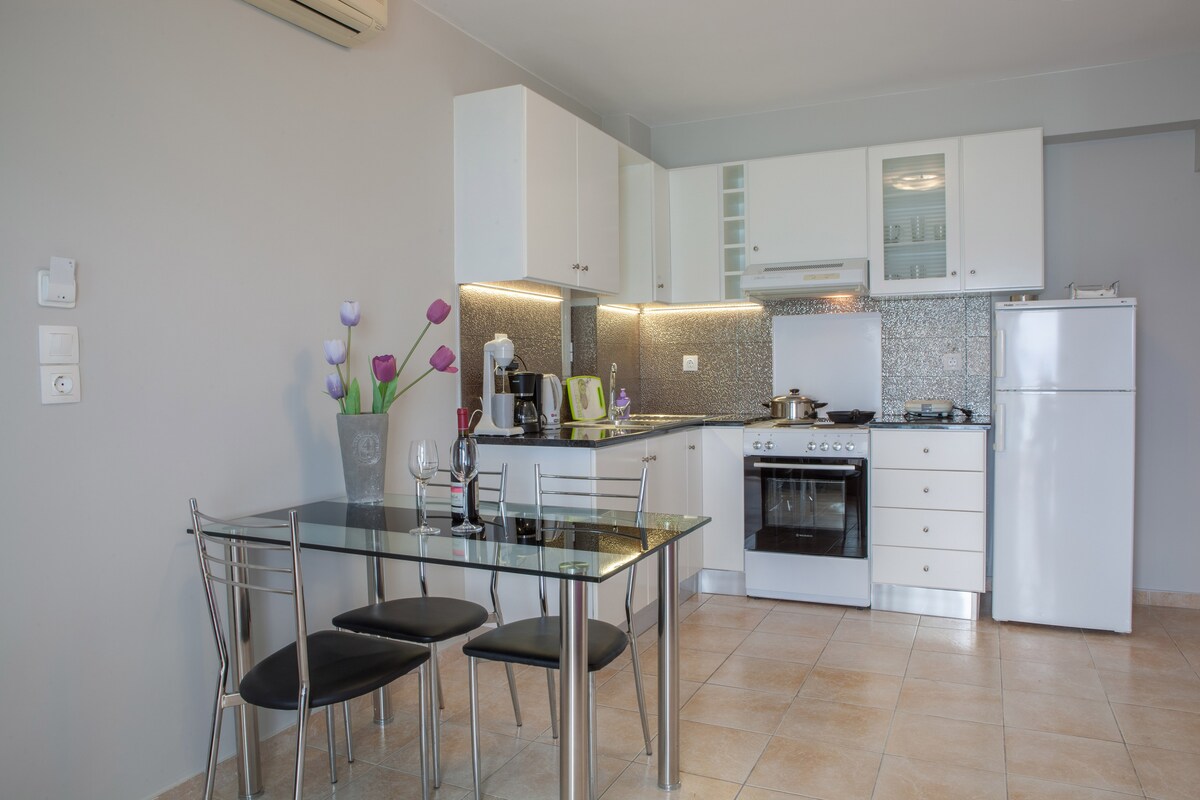 Entspanne dich in diesem ruhigen, geräumigen und luxuriösen Raum und genieße deinen Kaffee oder deine Mahlzeit auf dem Balkon mit Blick auf die üppige Grünfläche. Nur einen Steinwurf entfernt befindet sich das historische Nafplio, wo du deinen Kaffee oder deine Mahlzeit am Meer genießen kannst. Sicher, geschützt mit allen geplanten Maßnahmen, die von der Regierung angekündigt wurden. Streng sorgfältige Reinigung!