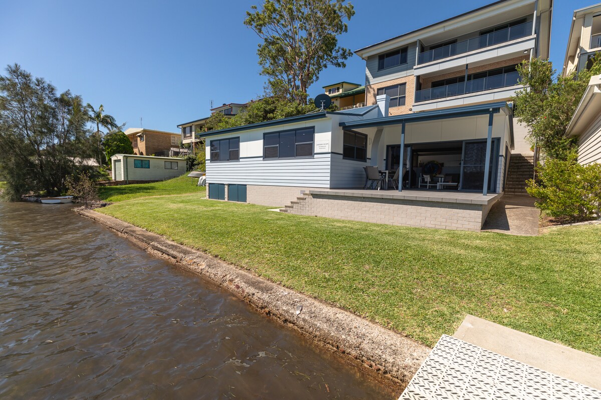 ON THE WATER. SUPER COSY. Cancel 5 days out. No cleaning fee. Original fishing cottage, just renovated. So peaceful, so quiet. Listen for koalas grumbling at night and awaken to a chorus of bird calls. Walk the waterfront path thru the koala reserve to Poyers restaurant. Watch for dolphins taking a breath. Ideal for kayaking. There’s Tanilba Golf Course just down the road. Flathead fishing is best just before hightide, right out in front. Please clean fish in sink by boatshed