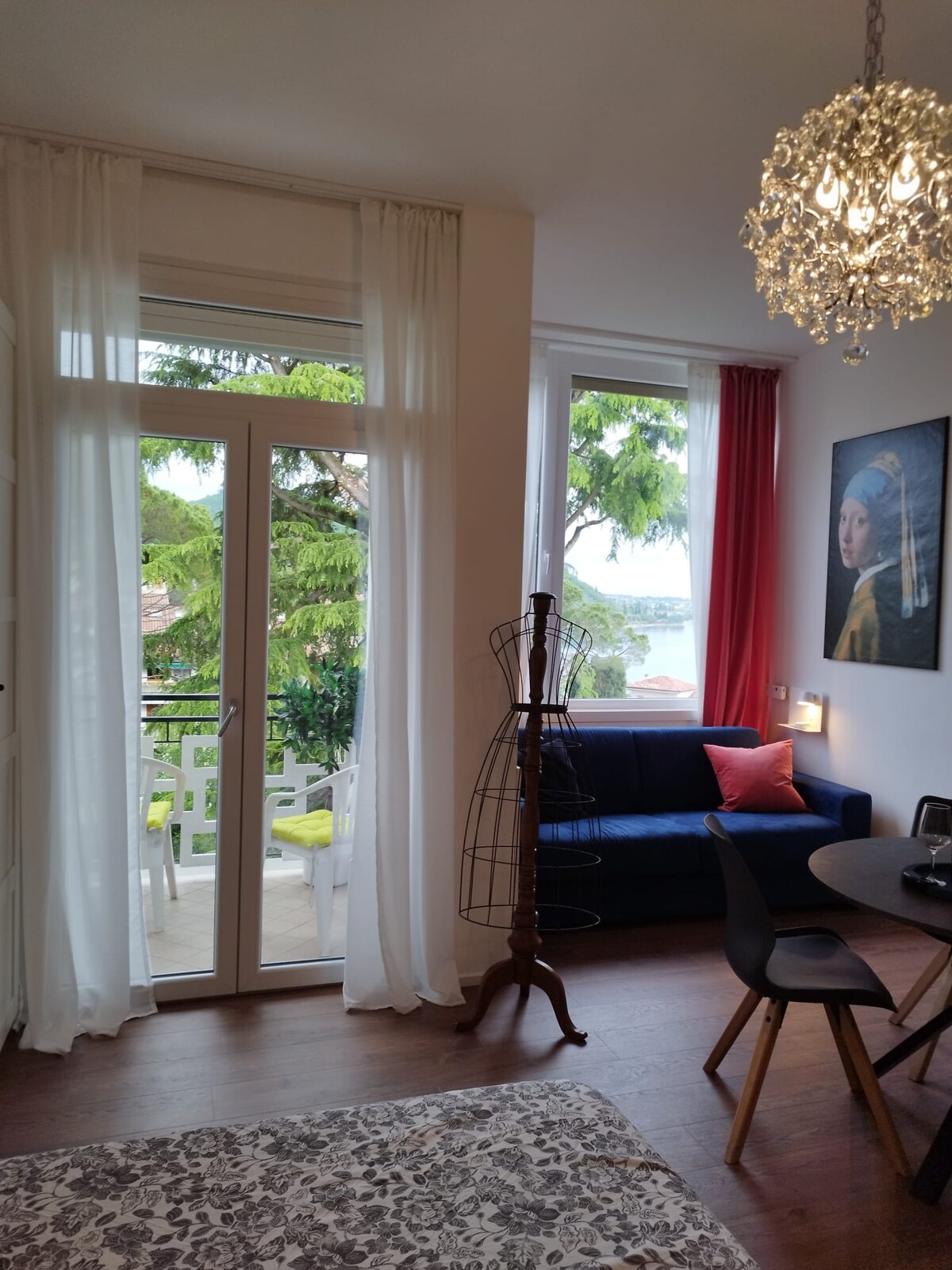 Ruhige und friedliche Gegend, aber 10 Minuten vom Dorfzentrum und dem See entfernt. Verfügbarkeit von Parkplätzen im privaten Garten; neu renovierte Wohnung, hell und modern mit Schlafzimmer mit Doppelbett, Wohnzimmer mit ausgestatteter Küche und mit einerinhalb Plätzen Schlafcouch, Badezimmer.