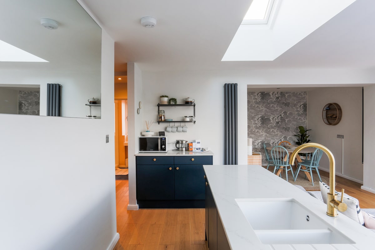 Bei No.4 Tidesreach ist der Strand nur einen Steinwurf von deiner Haustür entfernt, ebenso wie die Restaurants und Geschäfte. Das neu renovierte Studio ist ein gemütlicher Ort, der perfekt für eine junge Familie oder ein Paar geeignet ist. Es gibt direkten Zugang zur Rückseite des Grundstücks, sodass du dich vom Strand abduschen kannst, bevor du das Studio betrittst. Eingebettet im Herzen von Polzeath hast du einen perfekten Zugang, um dich auf die Küstenpfade zu begeben. Erkunde Daymer Bay und Rock oder die zerklüftete Küste zum Lundy Beach.