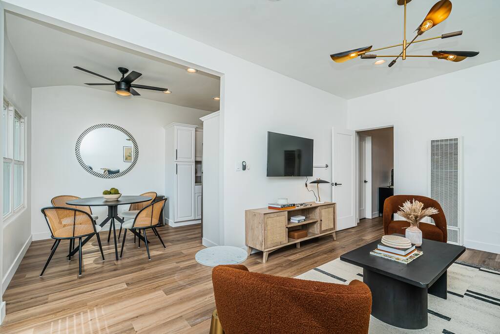 This meticulously renovated historical hotel suite, designed by Pininfarina, is located in Downtown San Diego’s vibrant Gaslamp Quarter, surrounded by restaurants and nightlife. It offers private, spacious accommodations for both business and leisure travelers, featuring a king bed, smart TV, central AC, and mini-fridge. Please note: an adjoining bar operates until midnight, and some noise is expected.