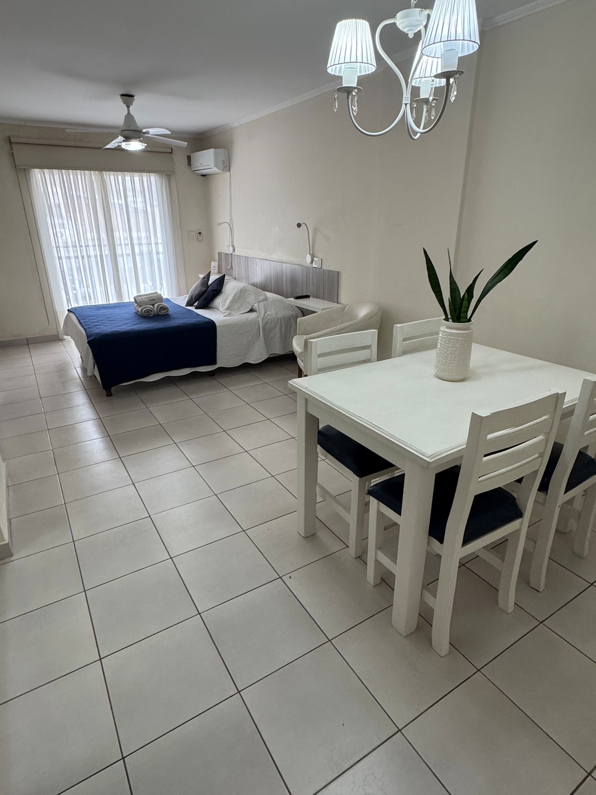 Hermoso departamento en pleno centro de Santa Fe. Disfrutá de una estadía cómoda y moderna en este acogedor departamento ubicado en el corazón de Santa Fe. Con capacidad para hasta 4 personas, ideal para parejas, familias o viajeros. El departamento cuenta con un balcón con vista al puerto, además de estar frente al famoso mural de Messi. A 100 metros de la terminal de ómnibus. A 300 metros del centro y casino. Cerca de todos los sanatorios de la ciudad.