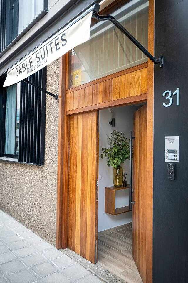 JABLE SUITES ist eine schöne Reihe von 8 Wohnungen im Herzen von Corralejo, nur wenige Gehminuten von den Stränden dieses herrlichen kanarischen Dorfes entfernt. Völlig private Wohnungen, von Design, eingerichtet und mit viel Zuneigung unter Berücksichtigung des kleinsten Details, großer Terrasse, Gartenmöbel und Hängematten. Definitiv ein Traumort für unvergessliche Ferien.