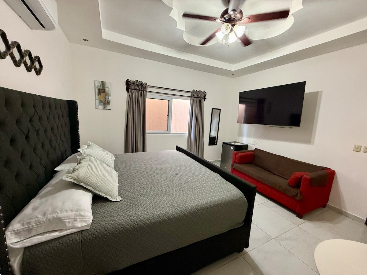 In den Villas del Sol gelegen, einem ruhigen und sicheren privaten Ort. Genieße die folgenden Dienstleistungen. - Klimaanlage - Privater unabhängiger Eingang - WLAN - Sichere Parkplätze. - Sicherer Bereich in geschlossenen Wohngebäuden - Privates Badezimmer - Fernseher 5 Minuten von allen Ausgängen von San Pedro Sula entfernt, sehr zentral und gut gelegen in der Nähe von Restaurants, Supermärkten und Einkaufsvierteln. Wir haben unser eigenes Restaurant vor Ort und bringen es auf dein Zimmer.
