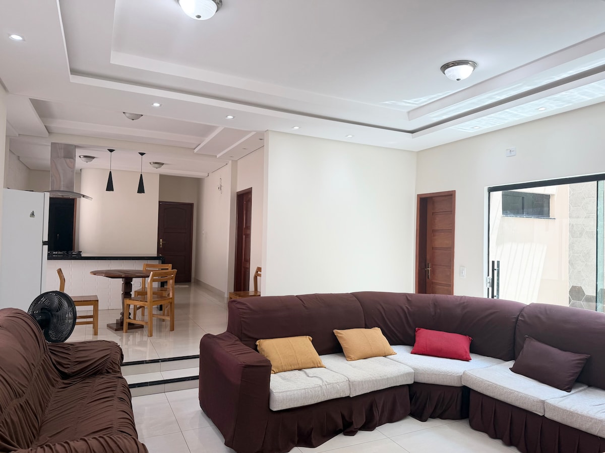 WILLKOMMEN in unserem Gästehaus, einer sehr ruhigen Umgebung, um mit der Familie und Freunden zu entspannen. Das Haus ist sehr geräumig und bietet viel Komfort und Struktur. Werfen Sie einen Blick auf die Struktur, die wir haben: Im Haus: - Platz für bis zu 6 Personen (2 davon sind Zustellbetten) -Klimaanlage in den 2 Schlafzimmern. -Smart TV im Wohnzimmer - WLAN - Voll ausgestattete Küche -Waschmaschine Im Außenbereich: - Garage für 4 Autos - Grill - Rasen