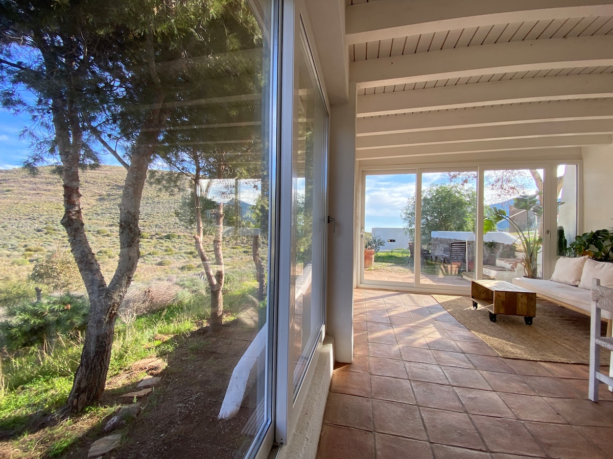 Playas vírgenes, baños de sol y noches de estrellas. Naturaleza y silencio a 4km del mar. Estudio rural en el corazón del Parque Natural Cabo de Gata, junto a San José y las famosas playas Mónsul y Genoveses. Casita de invitados rústica y tradicional rodeada de naturaleza, alimentada por energía solar que permite usar climatización AC/calor durante las horas de sol. En la misma finca hay un cortijo, también en alquiler vacacional, con privacidad en los espacios para todos los huéspedes.